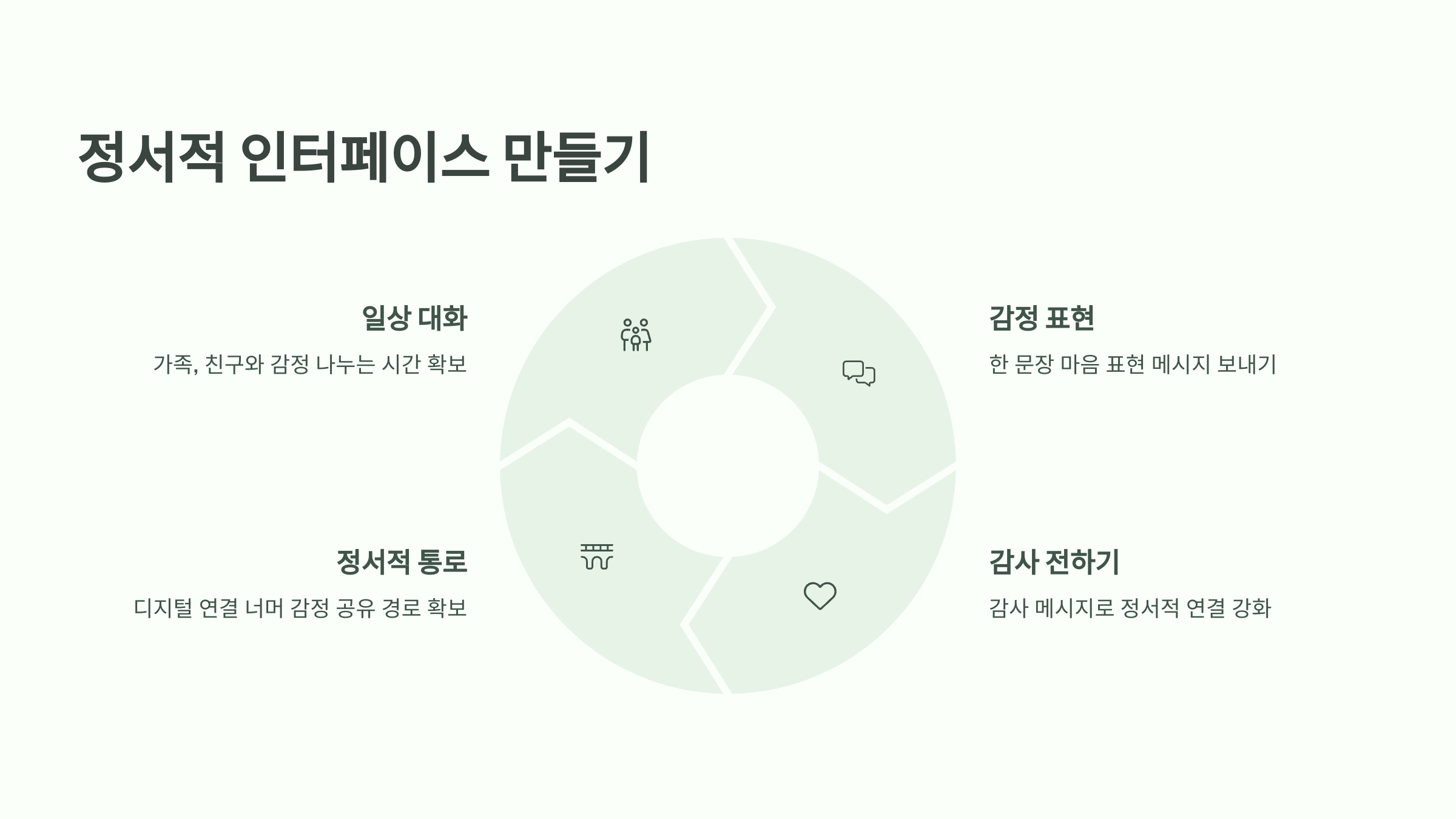 - 디지털 연결이 감정 공유의 장벽이 되지 않도록 정서적 통로를 따로 확보하는 것이 중요합니다.