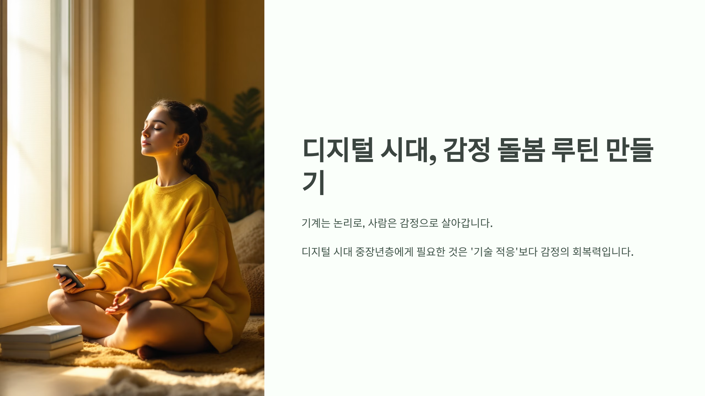 디지털 시대를 살아가는 중장년층에게 가장 필요한 것은 ‘기술 적응’보다 오히려 감정의 회복력입니다.